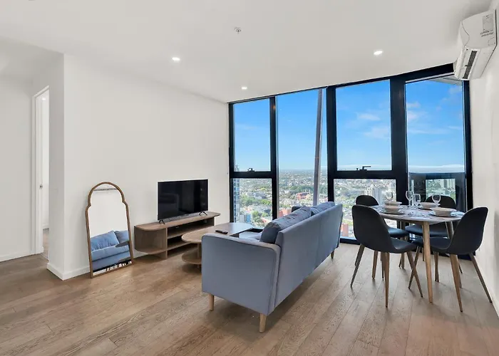 To enjoy your vacation in Melbourne, stay at Sky-High Cbd Retreat City Views Walk Everywhere Melbourne apartment, which is nearly 25 minutes' walk from the National Sports museum "Melbourne Cricket Ground" and a mere 0.7 km from the urban park "Flagstaff Gardens". Offering a hot tub, a sauna, and an indoor pool, the apartment is located in the vicinity of the State Library Victoria.